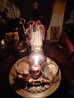 The collected materia was divided into groups and blessed with different spells and prayers each day throughout the novena, thoroughly enchanted by both myself and the Sorcerer Saint in the thick of his most potent days of the year.